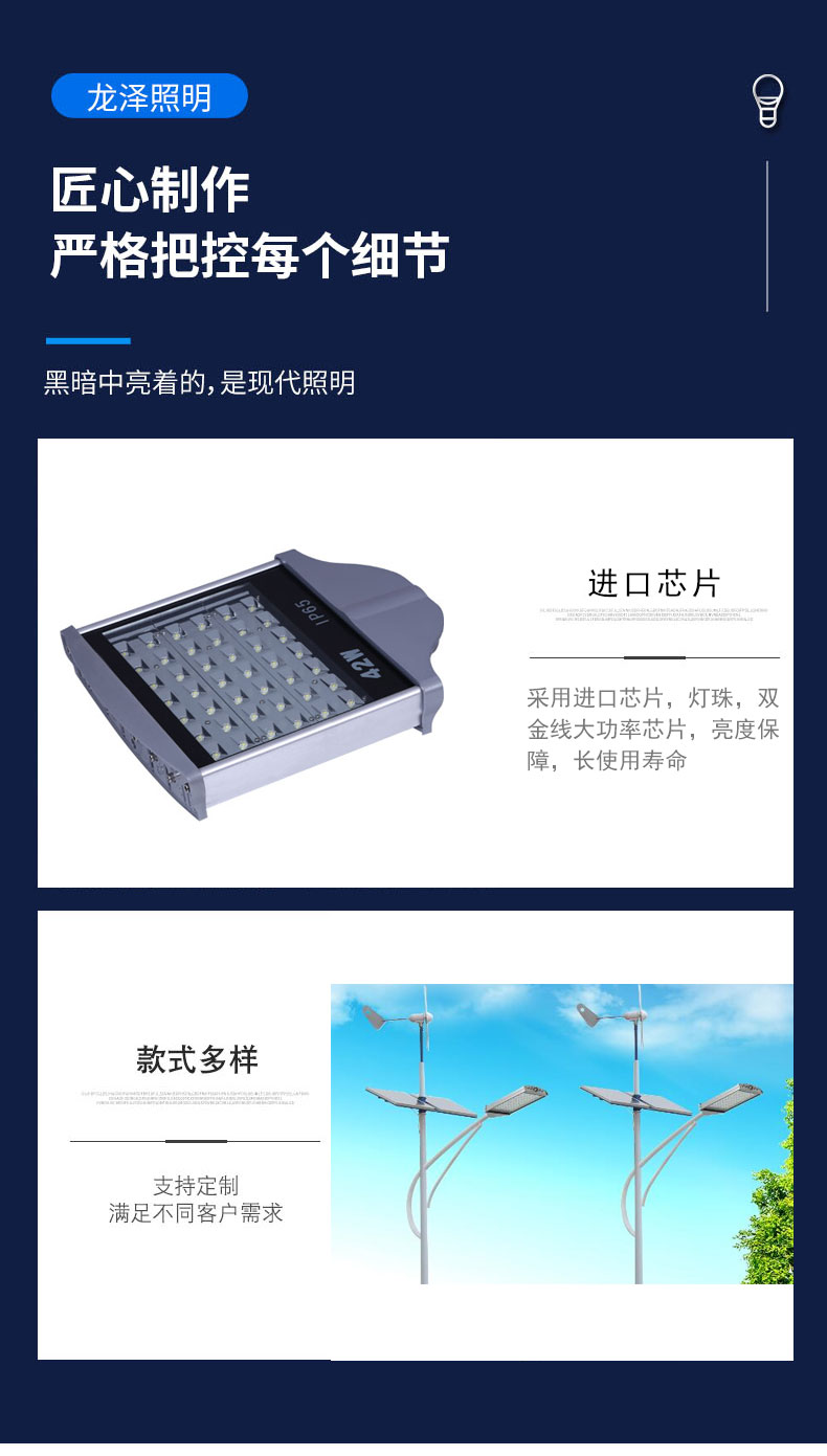 杆件选用宝钢集团优质Q235型号钢板,经大型号剪板机下料、1200吨大型压力机成型后焊接、校直、热镀锌、喷塑而成。 可根据用户需求生产不同长度、不同规格、不同喷塑色彩的风光互补路灯!欢迎前来咨询